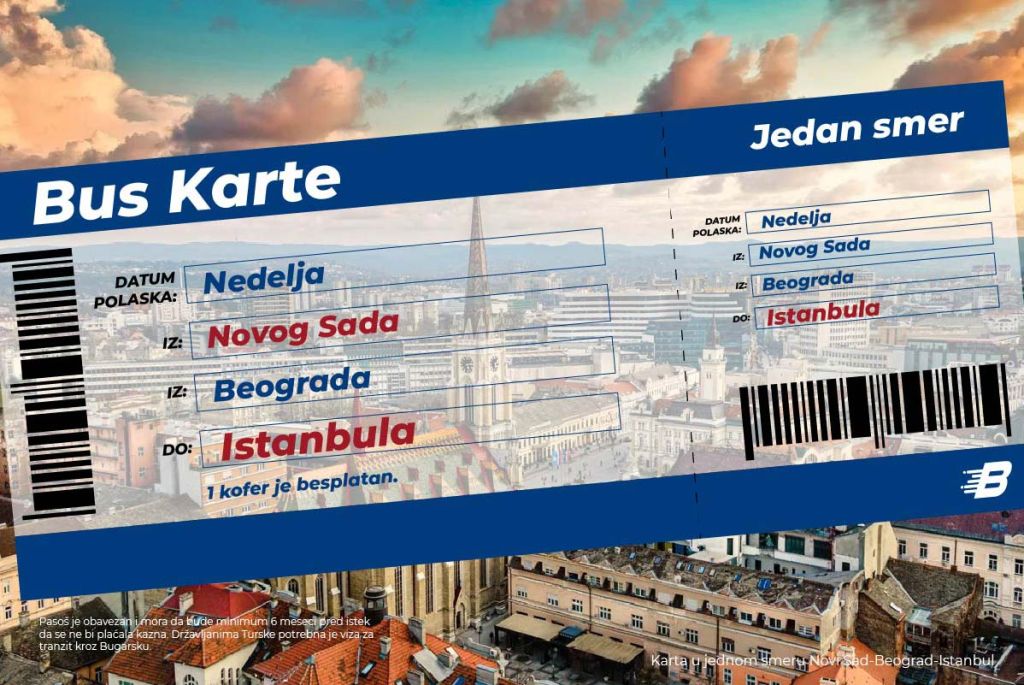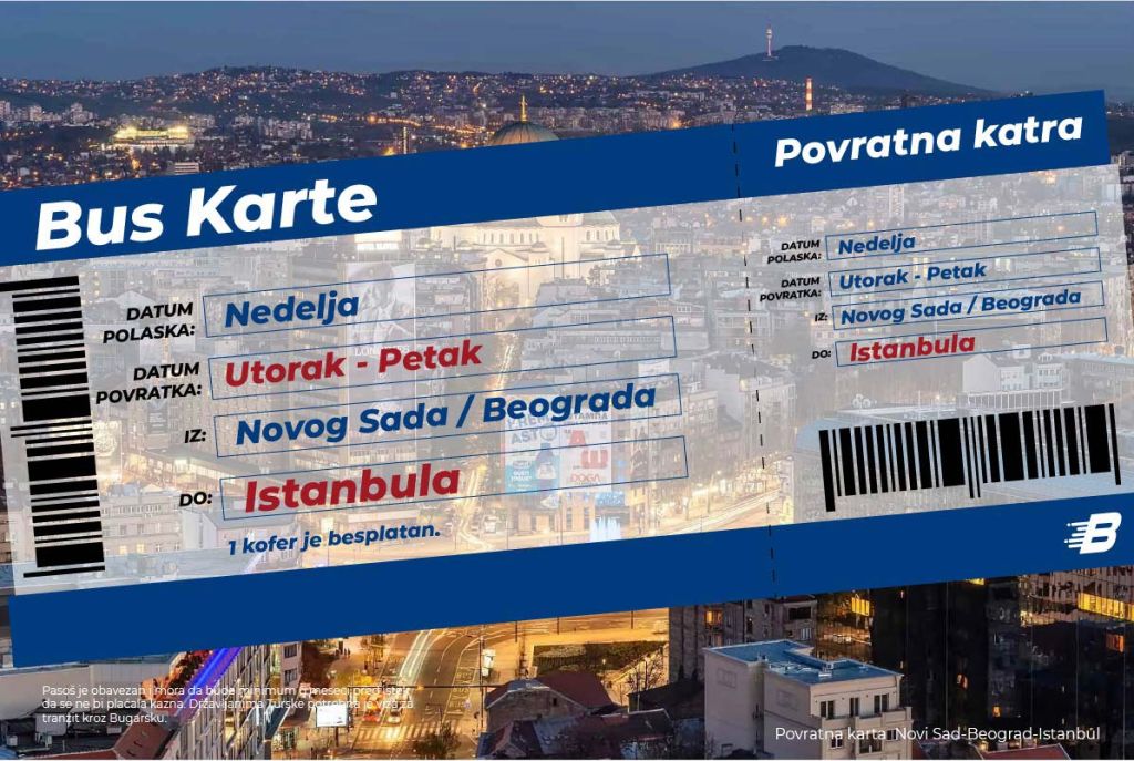 Povratna karta Nedelja Novi Sad - Beograd - Istanbul Povratak svakog utorka i petka